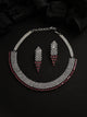SILVER PLATED AMERICAN DIAMOND AND DESIGNER STONE NECKLACE AND EARRING SET