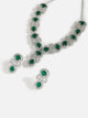 SILVER PLATED AMERICAN DIAMOND AND DESIGNER STONE NECKLACE AND EARRING SET