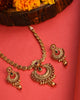Gold Plated Kundan Beaded Necklace, Earrings and Maang Tikka Set