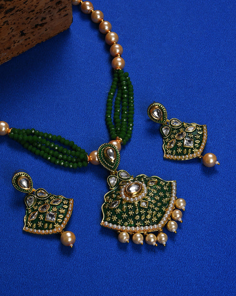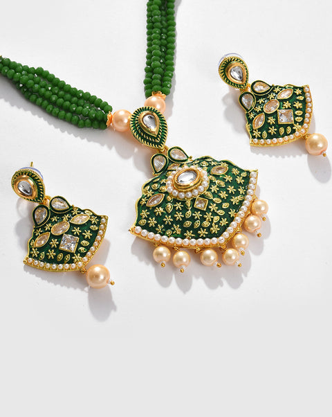 Gold Plated Designer Pearls Beaded Necklace and Earrings Set